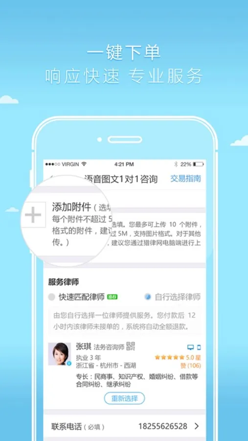2017年9月,“好律师”创新打造全新电话咨询产品“呼叫律师”。 用户语音下单,方便快捷;律师迅速回电,快如闪电;价格亲民,备受关注。