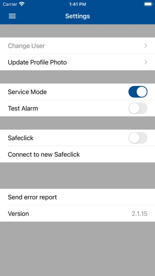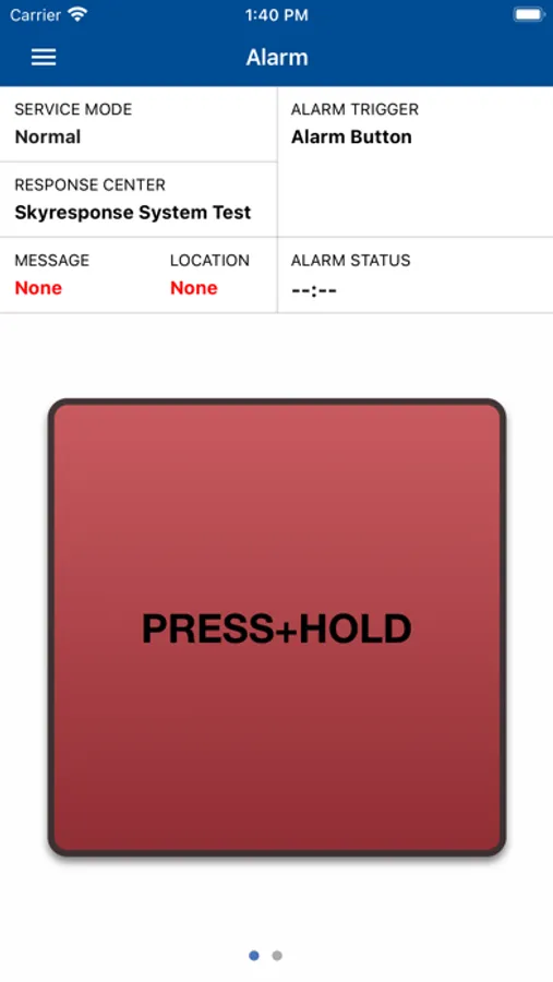 Alarms can be activated either by using the external wireless alarm button or directly from the screen in the app. The wireless alarm button is purchased separately and makes it possible to activate the alarm as long as the phone is in the same room. Activate the alarm from the screen either by holding down the alarm button for two seconds or by using the "dead-man grip" button.