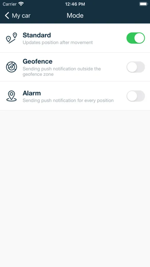 Login with your DanTracker user account and gain access to your tracking devices current position, position log, mode and status. You can choose from three different modes, namely STANDARD, GEOFENCE and ALARM. You will also receive notifications if your tracking device is outside geofence or has sent a position in alarm mode.