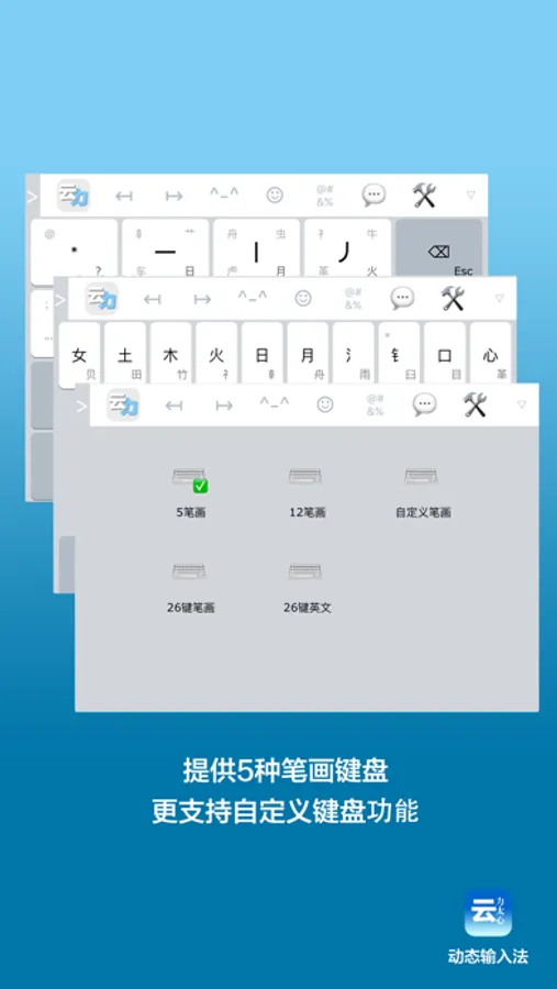 动态输入法是一款汉字拼形输入法,得益于笔画动态组字技术,笔画、部首或部件可以混合输入,动态组合成字,所键即所得,轻松易上手。