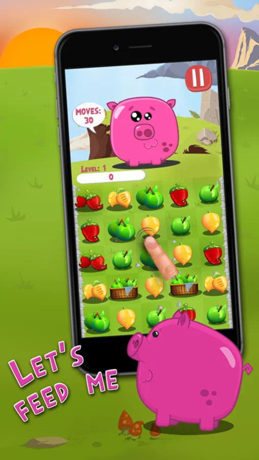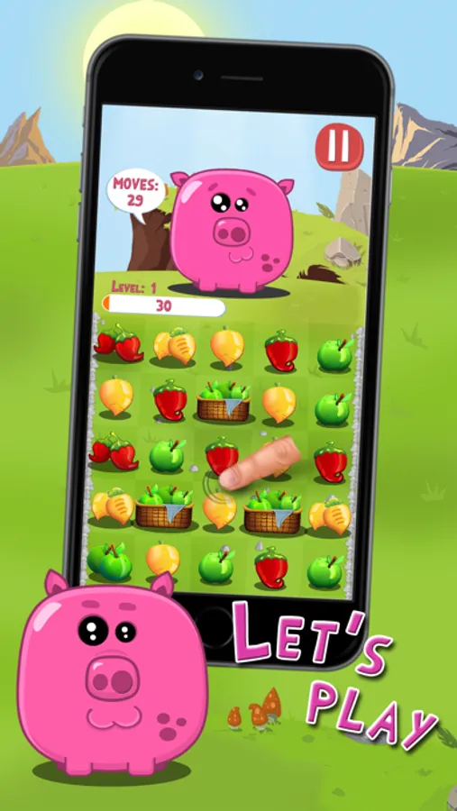 The object of the game is to match vegetables on the board to feed the cute hungry pig.
