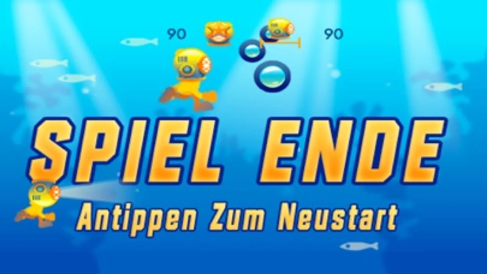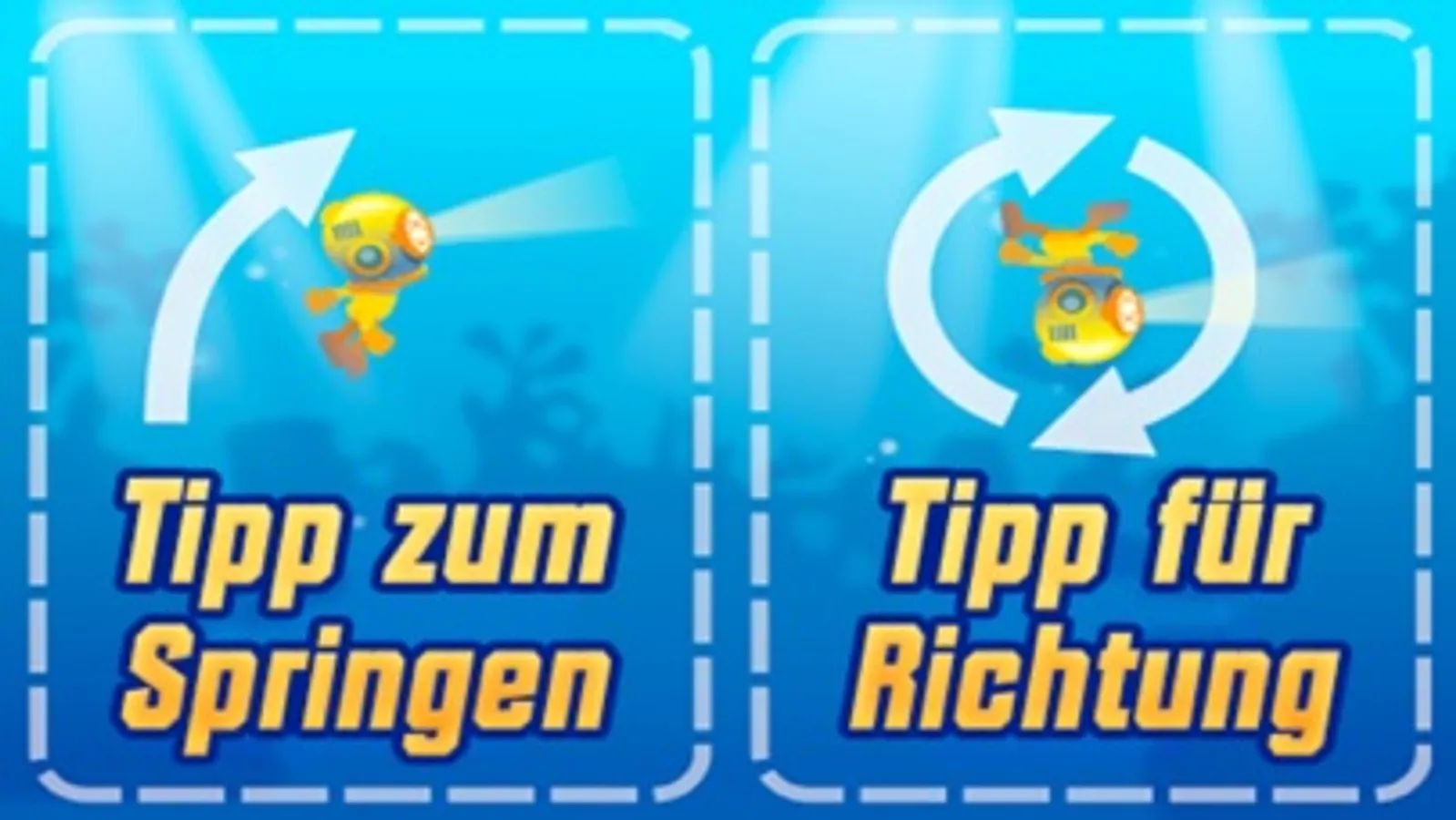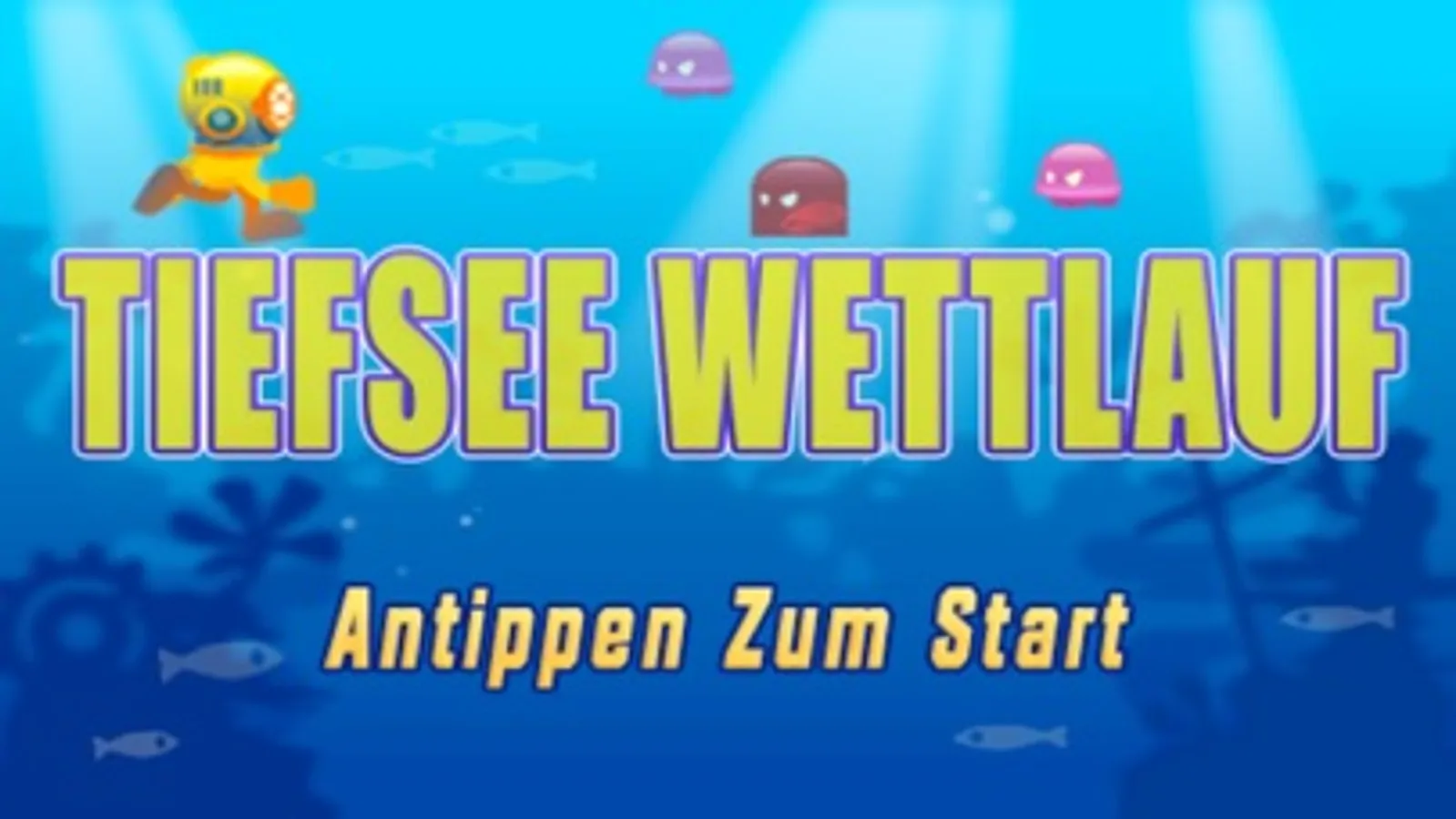 Der Tiefsee Wettlauf ist ein endloses Abenteuer Spiel am Meeresgrund. Innerhalb der Höhle kann der Taucher springen und zur Höhlendecke wechseln. Die Aufgabe ist es keine Qualle zu berühren und nicht von den Steinen in die Tiefe zu fallen.