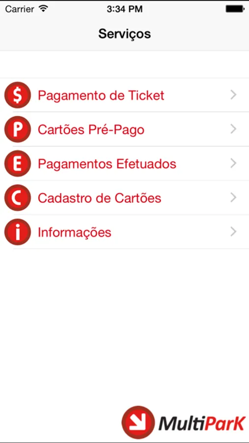 Pagamento de Tickets de estacionamento através de cartão de crédito.