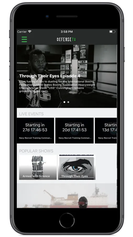 DefenseTV is the U.S. Military's on-demand streaming service for videos, live events, series and more. Gain instant access and stay connected to each branch of the military.
