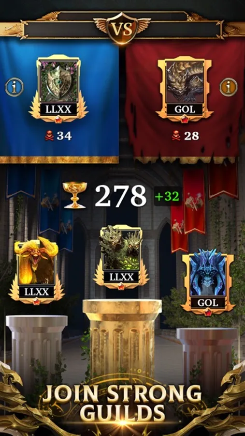 Join a guild with other players, strategize together and then go to war with other guilds!