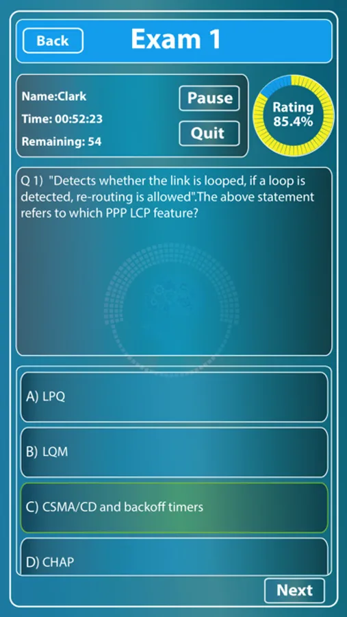 This app is a real time simulation for Cisco Certified Network Associate (CCNA) Routing and Switching. The First Exam is free as a demonstration, how ever if you like it you can buy all five exams through in App purchase.