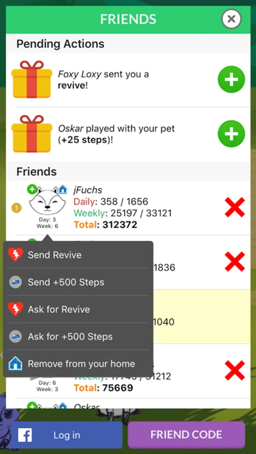 Meet your daily and weekly step goals and your pet will continue to grow with you! If you don't meet them, your pet will get sick and could potentially die :'(