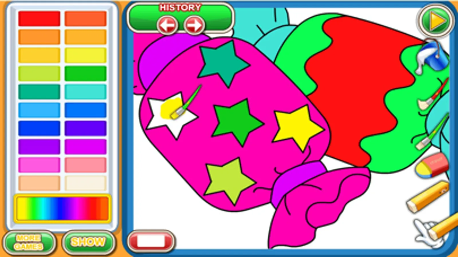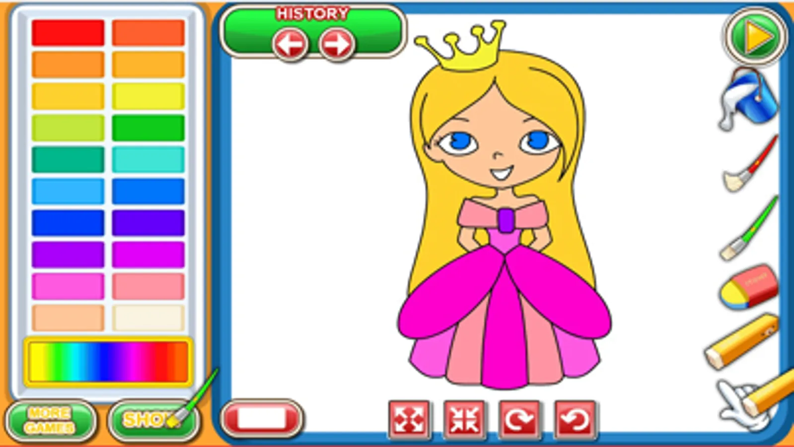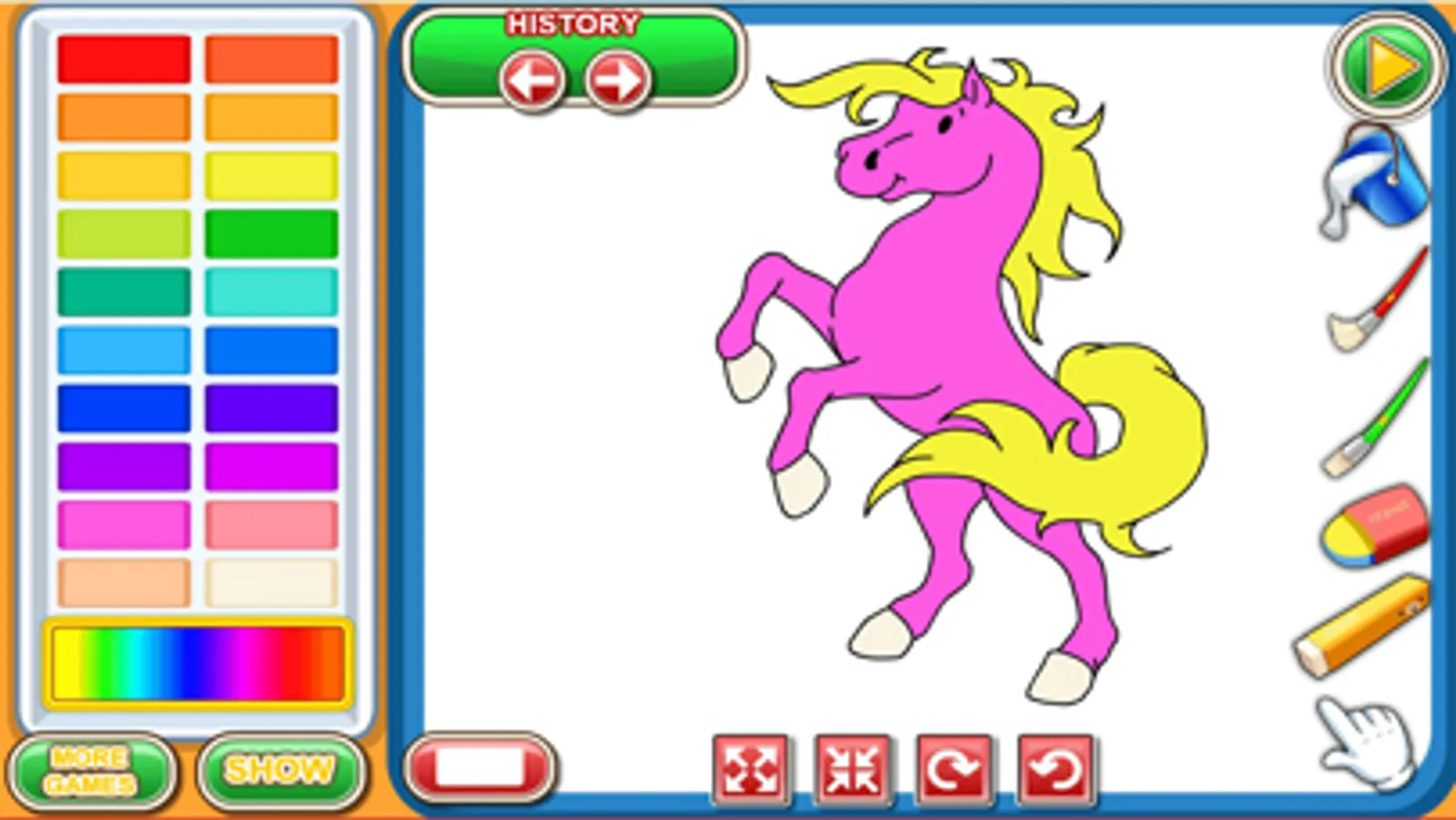 In My Coloring Book, you’ll get to enjoy coloring pictures without the huge mess. Just choose the image that you want to decorate and you can add the colors that you like to create your own unique pictures. As you play these coloring games, you’ll enjoy all of the cool tools that you can use to make your picture look great. The best part is that you can make your pictures totally unique with this fun coloring book!
