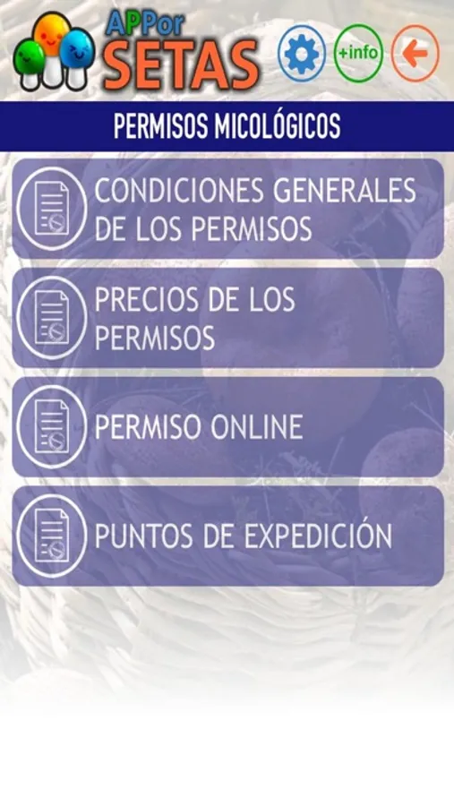 A través de las distintas secciones se ofrece a los usuarios toda la información que necesitan para la recolección de hongos, obtención de permisos, puntos de información, localización de paneles informativos y cotos disponibles. Se ofrece también una guía actualizable de las especies micológicas más frecuentes que se pueden encontrar en los montes, y la posibilidad de que los usuarios guarden las imágenes de las setas que van encontrando en su aplicación y las compartan con otros usuarios.