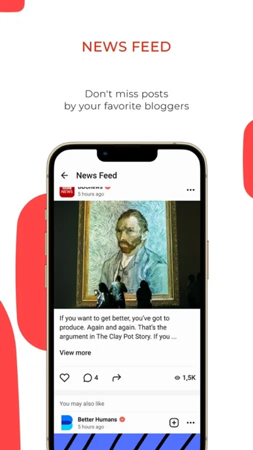 You can switch between favorite blogs with ease, or you can open the news feed in order to receive all the most recent content in one place. Simply scroll - it is endless: cool posts, articles, videos and pictures never end! The more you like, comment and subscribe, the more we learn what you enjoy. The news feed will understand you better than a close friend in matter of a week.