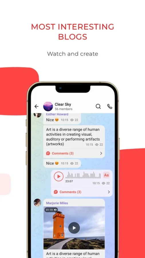 We have a convenient built-in editor mode which allows to generate any post - text, with video or cool pictures. We monitor all new bloggers and promote the most interesting channels through the built-in catalogue. You can also host live broadcasts and communicate directly with your subscribers.