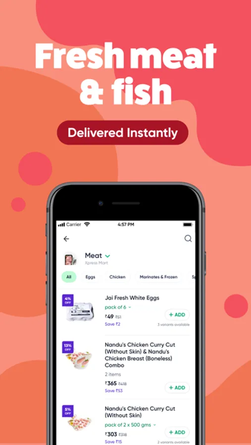 Get the freshest Meat, Chicken & Fish delivered to your doorstep instantly. Enjoy online delivery of meat like never before with this instant delivery app. If you enjoy fresh fish, you will definitely enjoy this online fish delivery we offer. Now order Chicken online or Meat; it will reach your doorstep in no time.