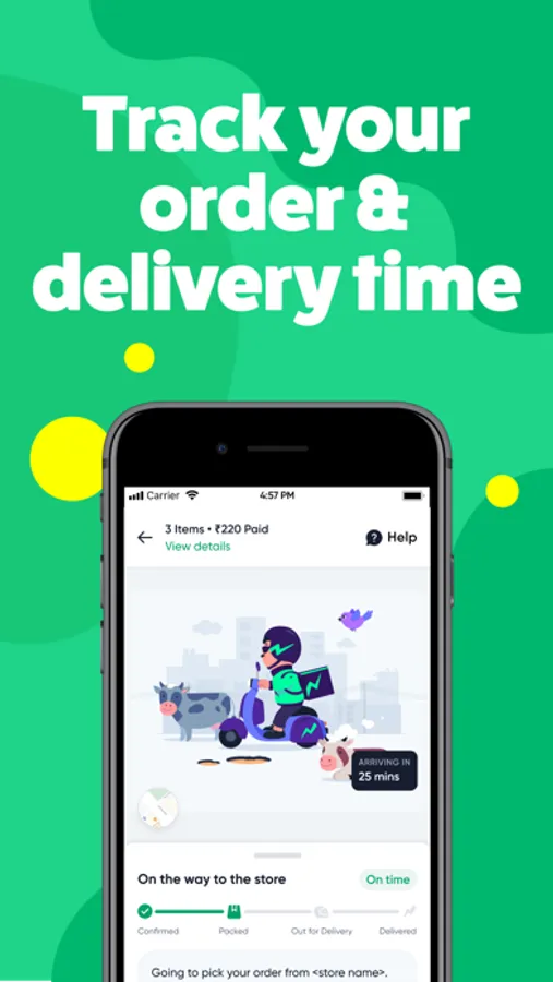 Get grocery shopping done & get it delivered in just 19 min in Bangalore & within 35 min in Hyderabad, Delhi, Gurgaon, Pune, Mumbai & Chennai.