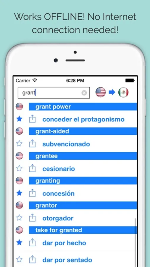 * No Internet connection needed! The ideal tool to avoid expensive data roaming fees during your trips to Spanish speaking countries (Spain, Mexico, Chile, Colombia, Ecuador, Argentina, etc.).