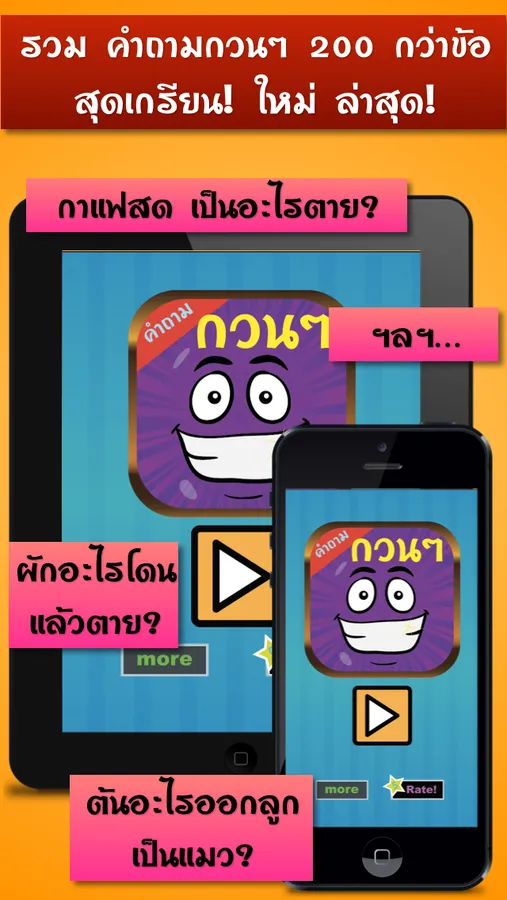 ดูคำถามกวนๆ ในแต่ล่ะข้อ เอาไว้ถามเพื่อน หรือผลัดกันตอบ คนล่ะข้อเพื่อ สะสมคะแนน แล้ว
