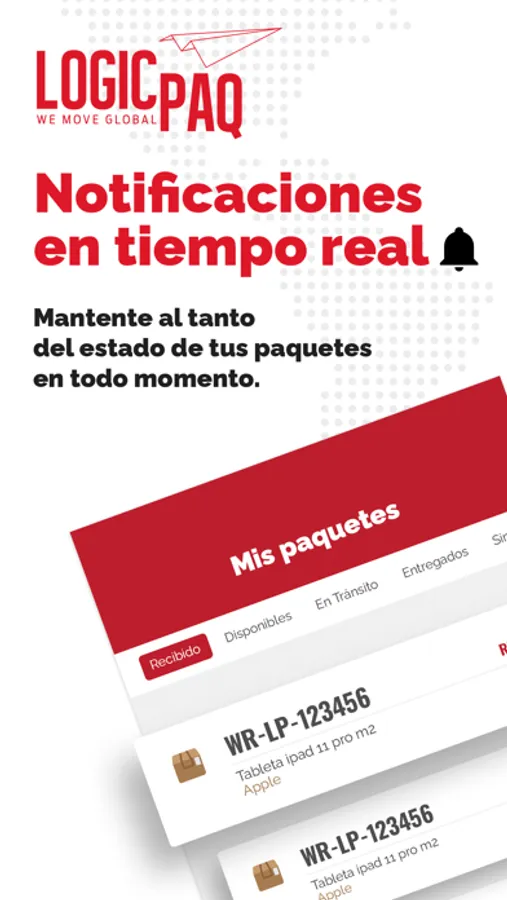 Recibe notificaciones cuando te lleguen tus paquetes a nuestro almacén, entérate en tiempo real cuando estén disponibles para entrega, consulta el monto a pagar y mucho más.