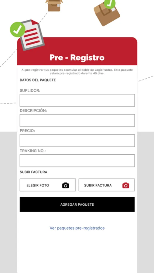 Esta versión incluye la posibilidad de subir la factura de tus paquetes, o de pre-registrarlos para que el registro de tus paquetes sea mucho más rápido, así como de asegurarlos y rastrearlos.
