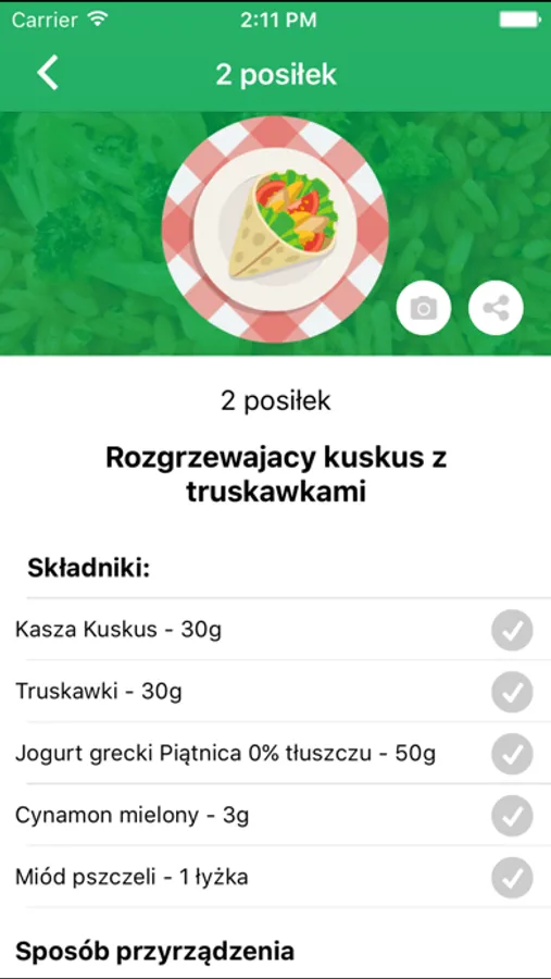 - Udostępnianie zdjęć przygotowanych przez siebie posiłków na facebook'u