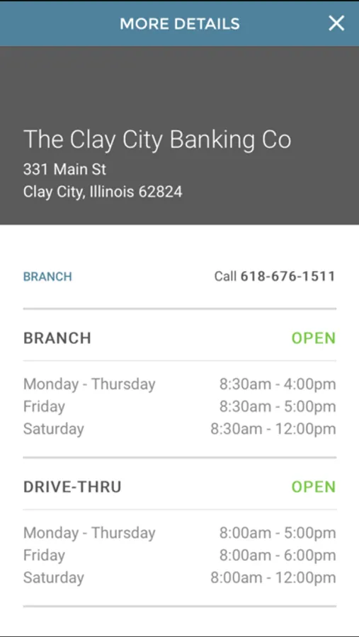 You can contact us at 1-618-676-1511 if you have any questions about The Clay City Banking Company’s Mobile App or the self-service registration process.