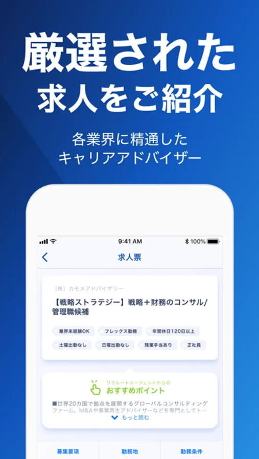 求人の検索から応募手続き、進捗管理まで、アプリひとつで完了。あなたの転職活動をサポートするリクルートエージェントの転職アプリです。