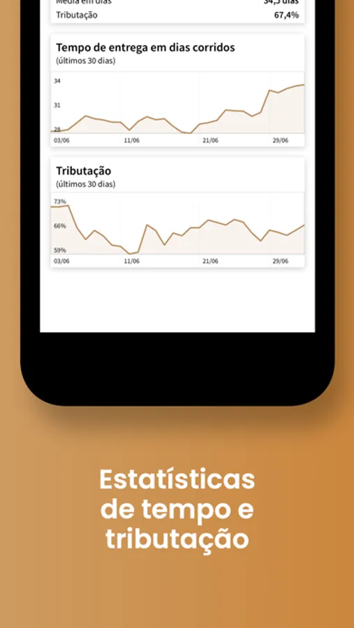 • Estatísticas de tempo de entrega e tributação