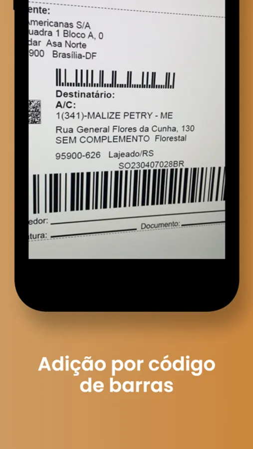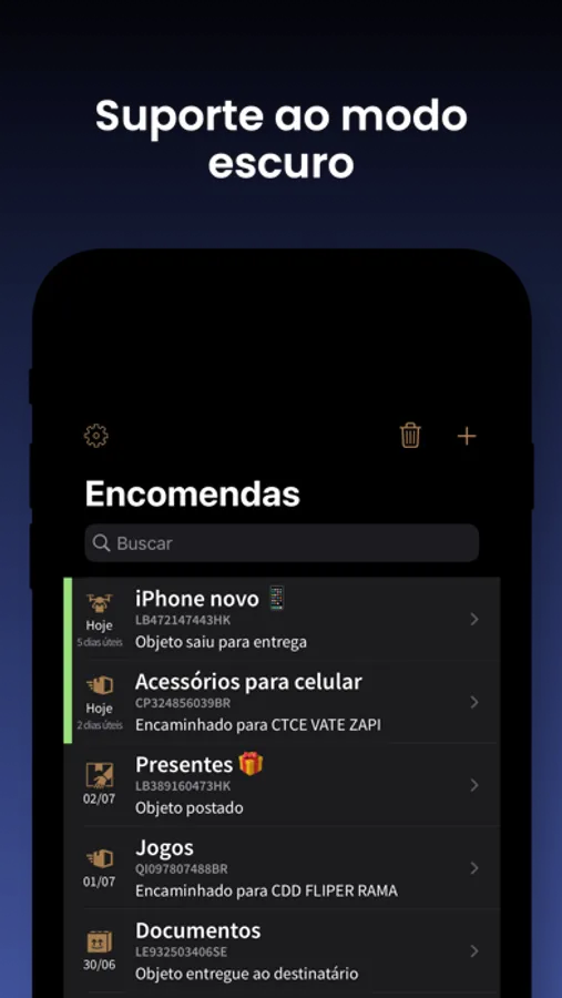• Após copiar um código de rastreio o aplicativo automaticamente sugere para adicioná-lo