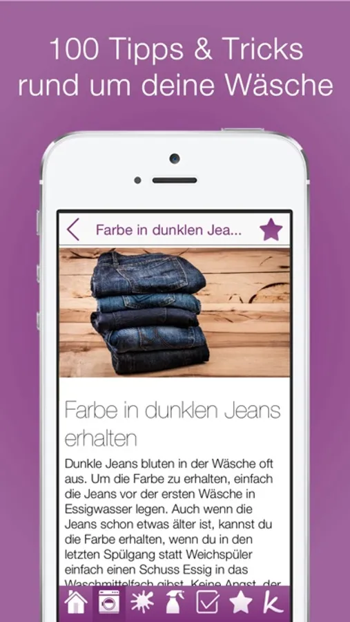 Gestalte deine ganz persönliche Wäsche-App, indem du die Tipps, die du am häufigsten benötigst, als Favoriten markierst und dir Notizen dazu machst.
