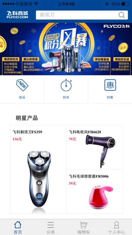 飞科商城是飞科官方唯一网上商城,在线销售电动剃须刀、电吹风、直发器、卷发器、理发器、电熨斗、挂烫机、女士剃毛器、鼻毛修剪器,毛球修剪器等智能、简约、时尚的个人护理电器。上飞科商城购物,官方网站正品保障!