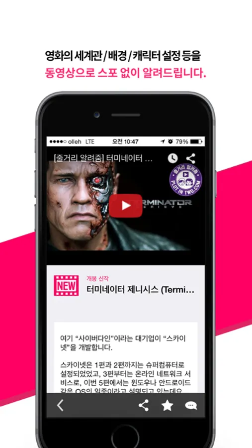 : 매주 최신 개봉영화 1~2편을 선정하여, 영화를 더 재밌게 볼 수 있도록 작품배경과 캐릭터 설정을 알려드립니다. 이제 줄거리 알려줌으로 어떤 영화를 관람하실지 결정해 보세요.