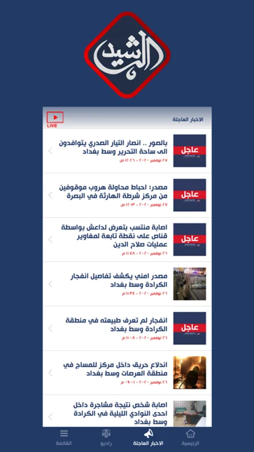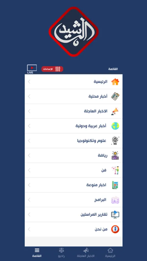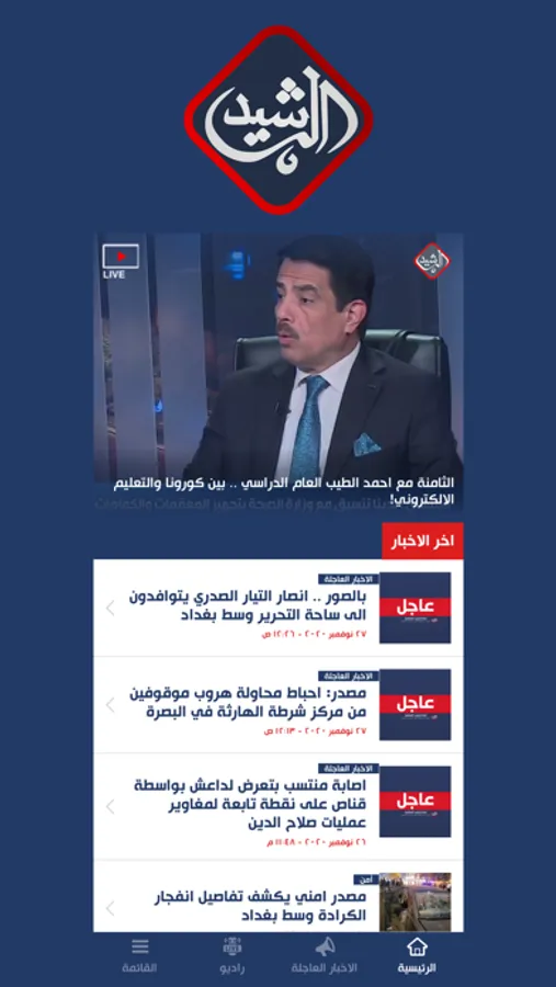 قناة الرشيد الفضائية عراقية تبث برامجها السياسية والمنوعة وايضاً الاخبار المحلية والعربية من بغداد على التردد 10892 نايل سات