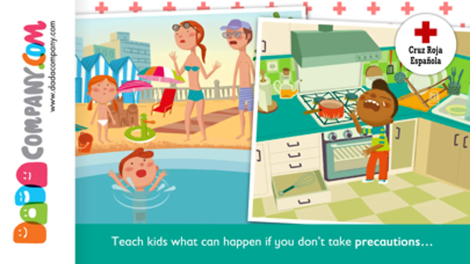 Boys and girls can act out each simulation however they like and see the consequences of their actions. They will learn to take care to prevent falls, to avoid cuts and burns in the kitchen, to be prudent at the park and to recognize toxic products that may be found at home. They will also learn how to avoid traffic accidents, drowning at the beach or in pools, heat stroke and sunburn.