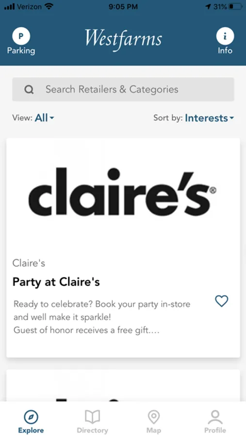 FAVORITES – Personalize your experience by selecting your favorite retailers, restaurants, offers and events.