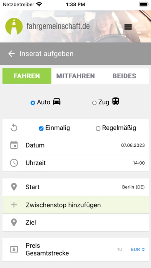 Mitfahrgelegenheiten bei Fahrgemeinschaft.de einstellen und finden!