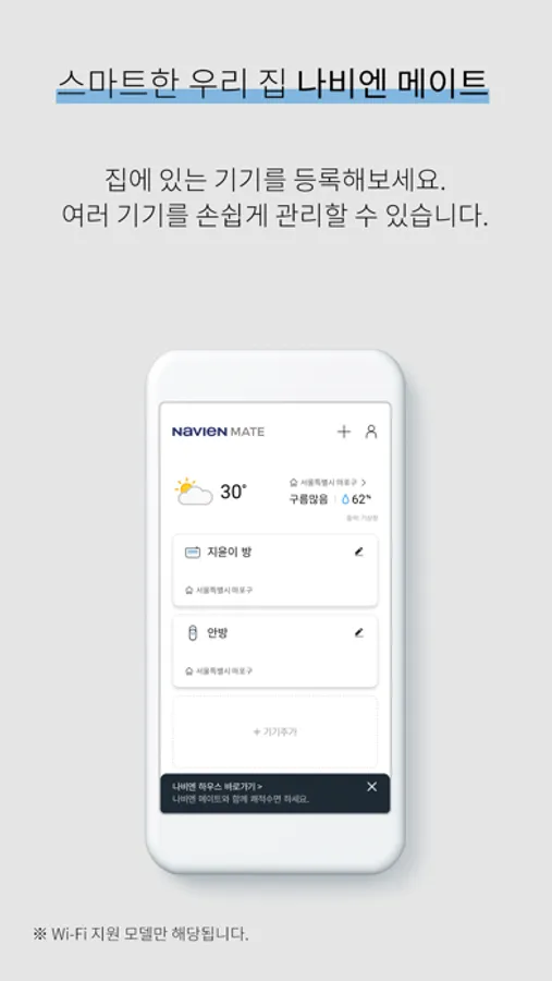 * 나비엔 메이트 앱을 사용하기 위해서는 회원가입과 기기 등록이 필요합니다. (Wi-Fi 모델)