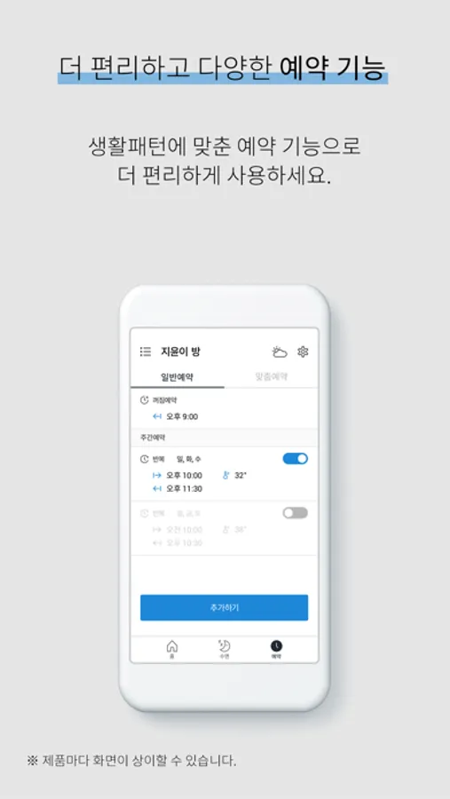 생활 패턴에 맞춘 예약 기능으로 더 편리하게 사용하세요.