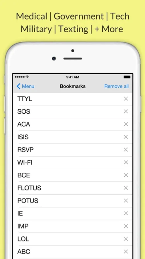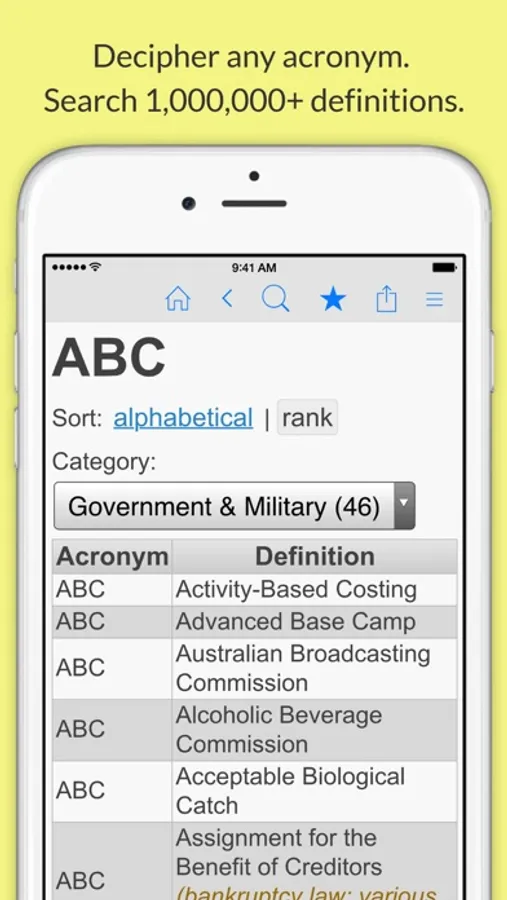 User-friendly, comprehensive, and authoritative: Acronyms and Abbreviations Dictionary by Farlex is the perfect free acronym reference for medical professionals, military personnel, government workers, and anyone who needs to quickly decipher the ever-increasing amount of acronyms.
