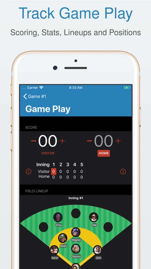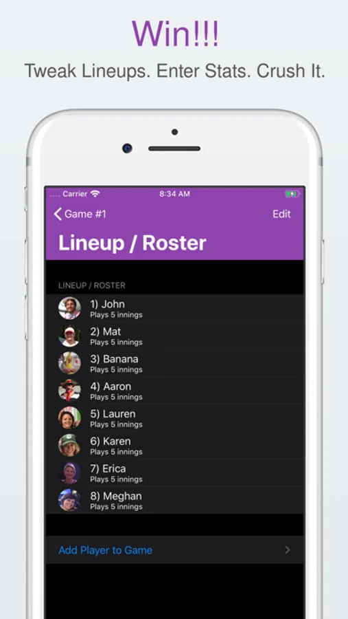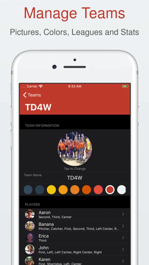 Kickball Coach helps coaches manage teams, players, lineups, player stats and game play. Lineups are created at the tap of a button based on your player’s skills. Player profiles are used to set a player’s picture, favorite song, skills on the field and what positions they play. Team profiles can be used give your team a custom color, picture, game rules and to rank your players by skill at each position.