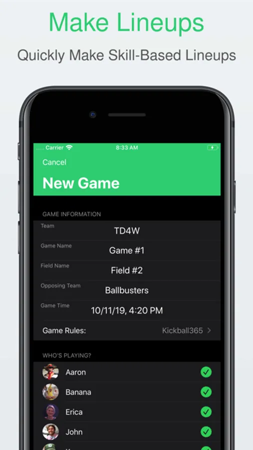 Use the built in game rules for WAKA, Kickball365 and Laser Athletics or customize the game rules to fit your needs.