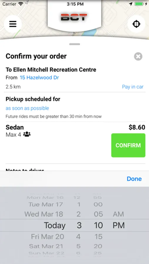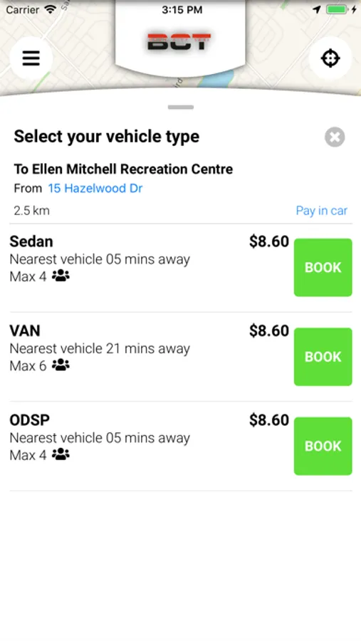• Specify the number of passengers, vehicle type and preferred payment method