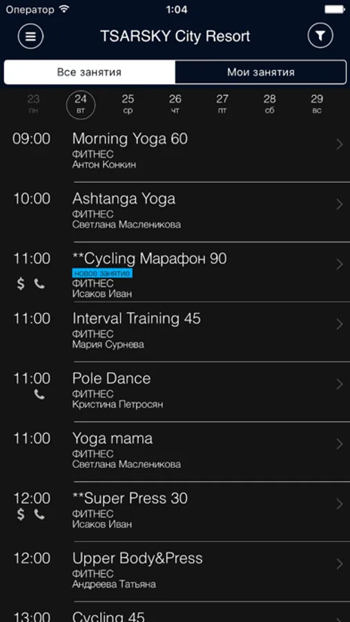 - получать оповещения о предстоящих тренировках и обо всех изменениях;