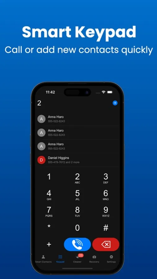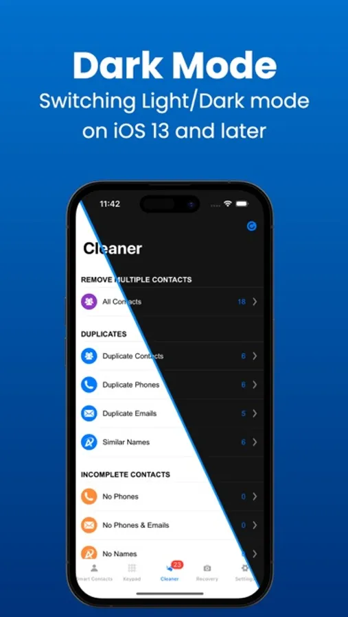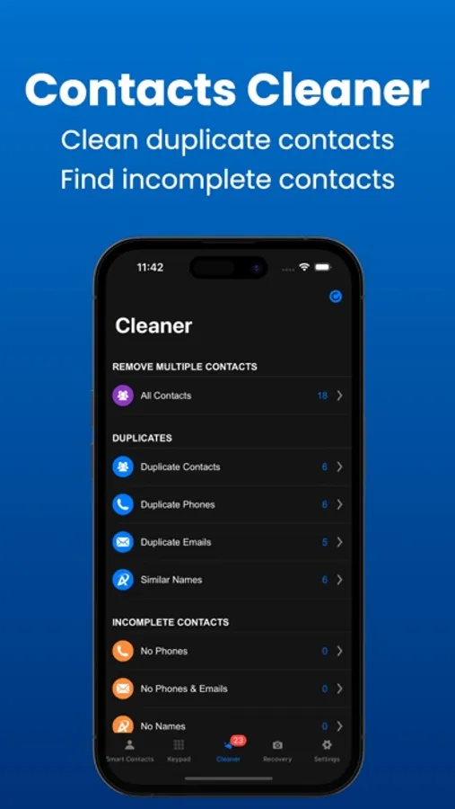 • Clean Up Your Contacts: Automatically find and delete duplicate or incomplete contacts.