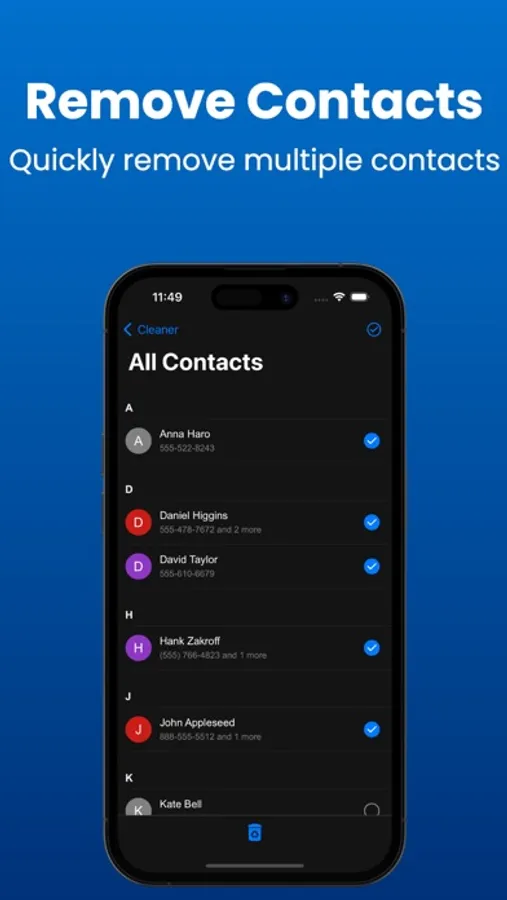 • Get Rid of Unused Contacts: Say goodbye to unnecessary contacts with just one click.