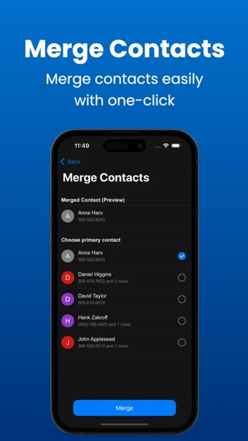 • Merge Contacts with Ease: Combine multiple contacts into one with a simple click.