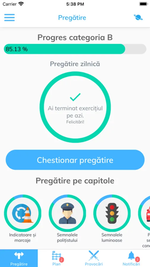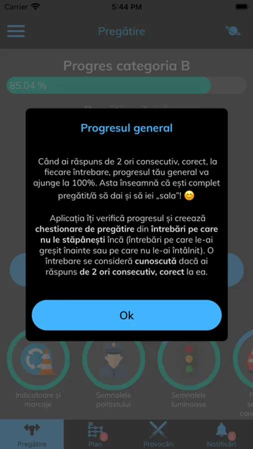 Știi tot timpul care e nivelul tău de pregătire și cât mai trebuie până la a fi complet(100%) gata de examen.