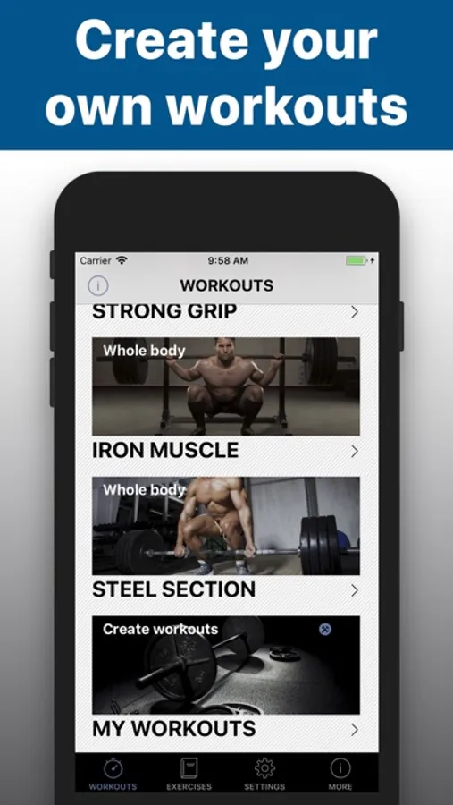 - The app contains 7 workout sections and every section has 15 workouts and none is repeated.