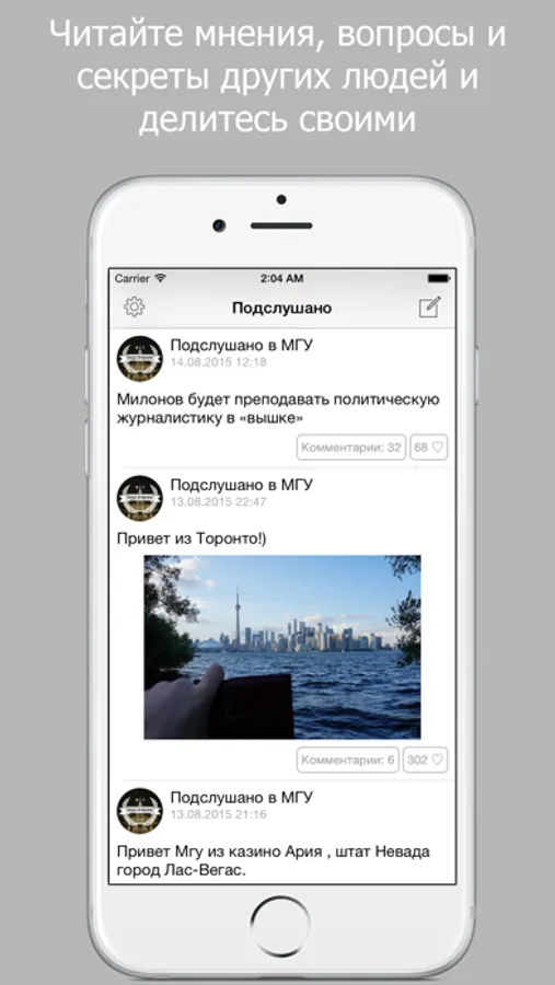 "Подслушано" основных российских университетов в одном приложении. Читайте, узнавайте новости и секреты, задавайте свои вопросы и делитесь своими секретами, общайтесь в простом и удобном приложении. Будьте всегда в курсе событий!