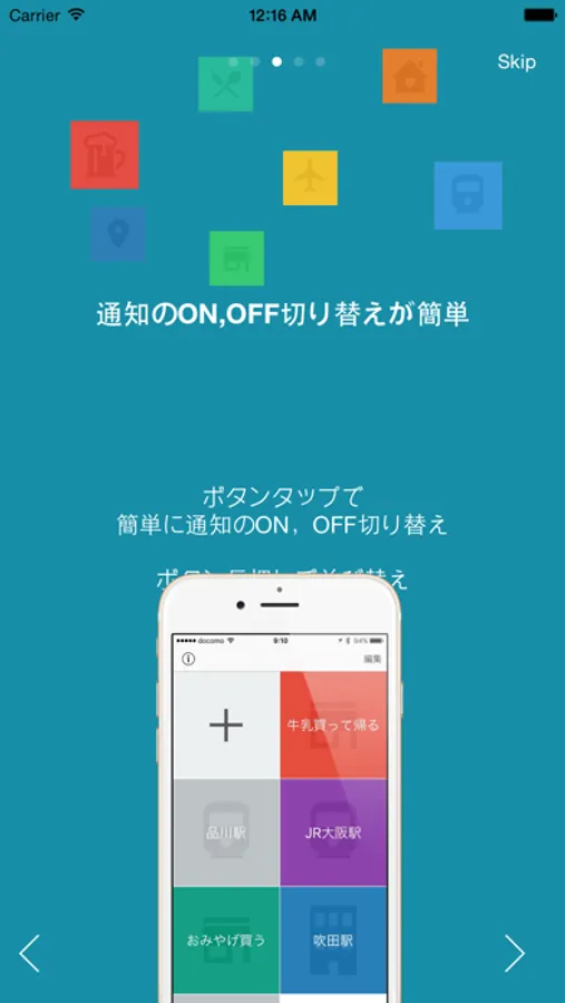 - Notification of on-off is it easily done in one tap. (※ location that can be ON is a maximum of 5 points) if carried out prior to the registration of location, will switch the only notification to tap. - Since the notification will come up to four times, it is somewhat easy to notice.