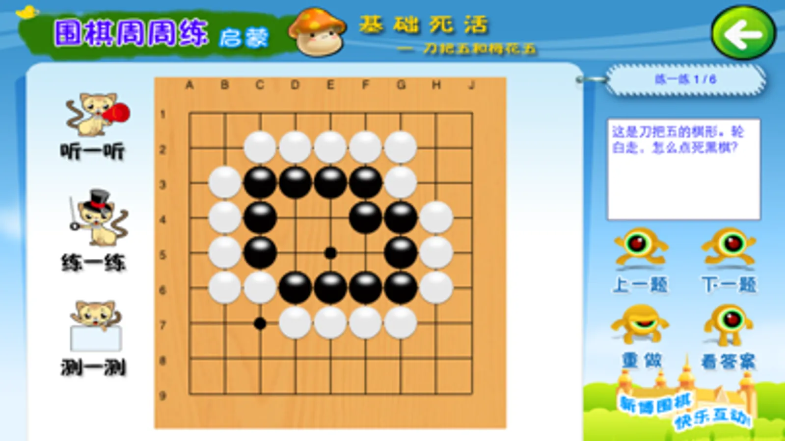 iOS版本在原来光盘版本的基础上进行了大量的改进,使用更加简单,适合的小朋友水平覆盖从完全无围棋知识的小朋到已经具备8级水平的小朋友。