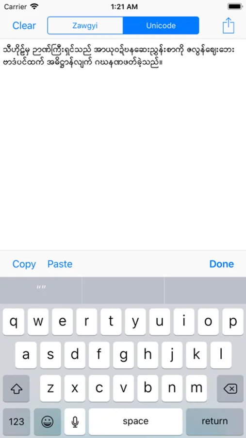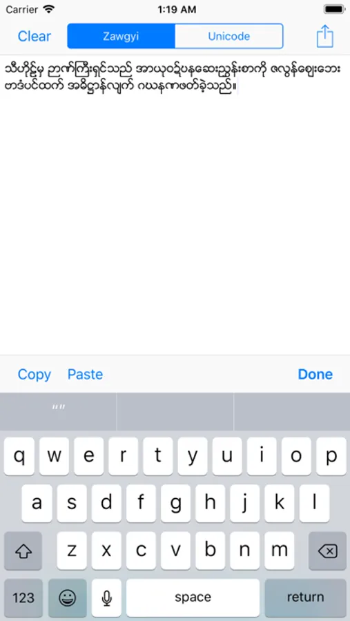 Rabbit is the Zawgyi to Unicode, Unicode To Zawgyi Converter. Easy to convert and easy to share after converting.