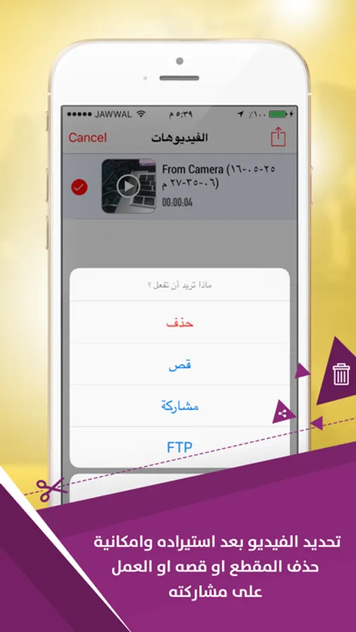 تطبيق قص مقاطع الفيديو , تستطيع من خلال التطبيق العمل على قص اجزاء من الفيديو لديك بكل سهولة والعمل على تسمية هذه المقاطع واعادة نشرها بسهولة.